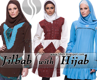 In this modern age as clothing trends improving itself day by day and more and more styles are being introduces by the designers, in Islamic world designers also creates groom and variety in Islamic clothing for women and emerge beautiful designs while keeping the dignity of dress safe. Now days hijab and Jilbab are widely used to give stylish look. Large V shape Jilbab enriched with motif and embroidered work looks cool. Blue and dark brown contrast is very nice. Designer suggests belt for working women, so that they would feel free to wear that suit. Jilbab’s are widely used with trouser and jeans in west and in Gulf. The Jilbab have beautiful bridal hijab which is contrast with the jilbab.